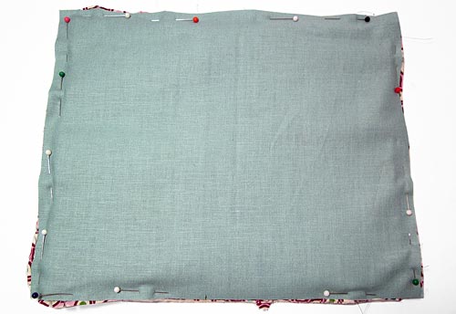 - Pin the solid 5″ x 7″ rectangle to the print 5″ x 7″ rectangle along one 7″ side. If you are using a directional print, it should be the TOP 7″ side of the print.