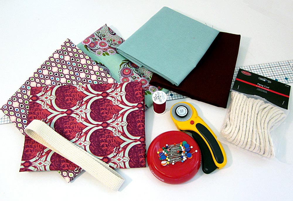 - Scraps of various cotton fabrics or ¼ yard cuts; we recommend THREE coordinating print scraps and TWO coordinating solid scraps