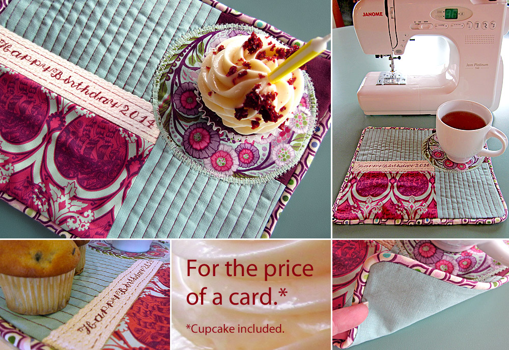 Super cute and so much more personal and useful than a throw-away greeting card, our mug rug finishes at 10½” wide x 8½” high.