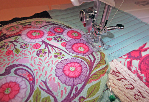 - Use a Zipper foot to stitch the wrapped fabric in place. When stitching, keep your seam line as close to the cord as possible and the seam allowance consistent.