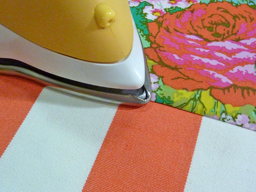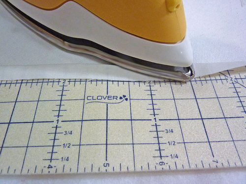 - Fold down the top raw edge of the lining ½” all around. Press in place. We used our Clover Hot Hemmer.