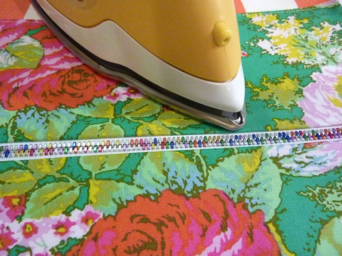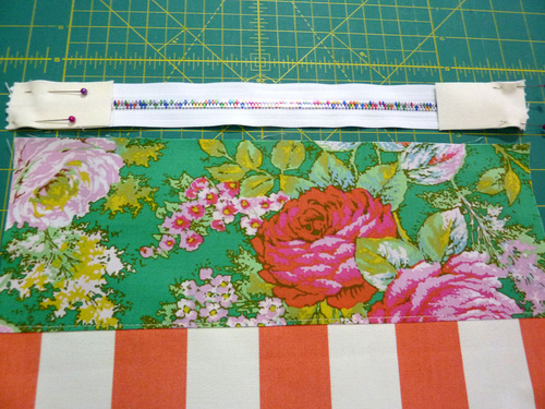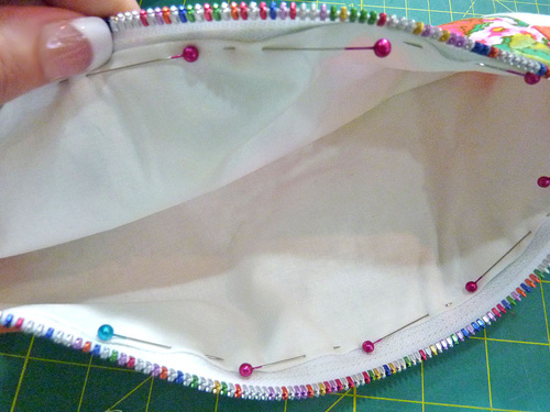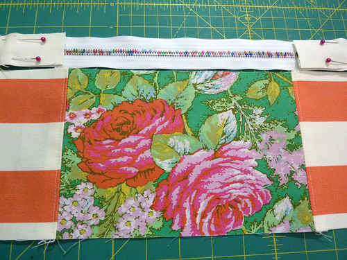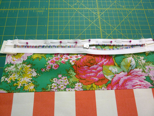 - Pin in place along the top edge of the zipper tape.