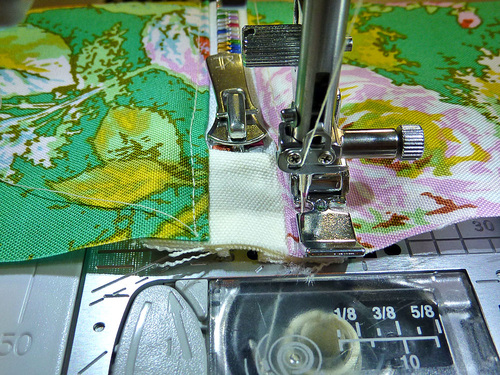 - Attach your Zipper foot. Stitch the zipper to the fabric panel, running the seam about ⅛” from the zipper teeth.