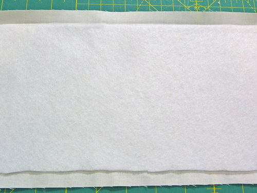 - From the fusible fleece, cut TWO 12” x 4½” rectangles.