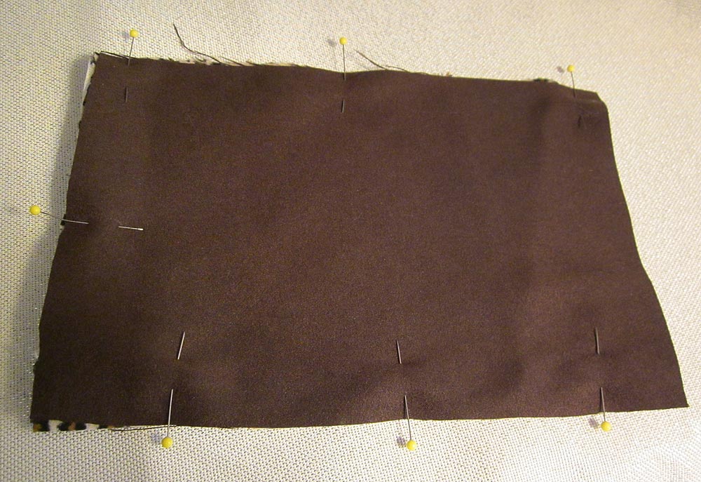 - Following manufacturer’s instructions, fuse the interfacing rectangle to the wrong side of the exterior piece.