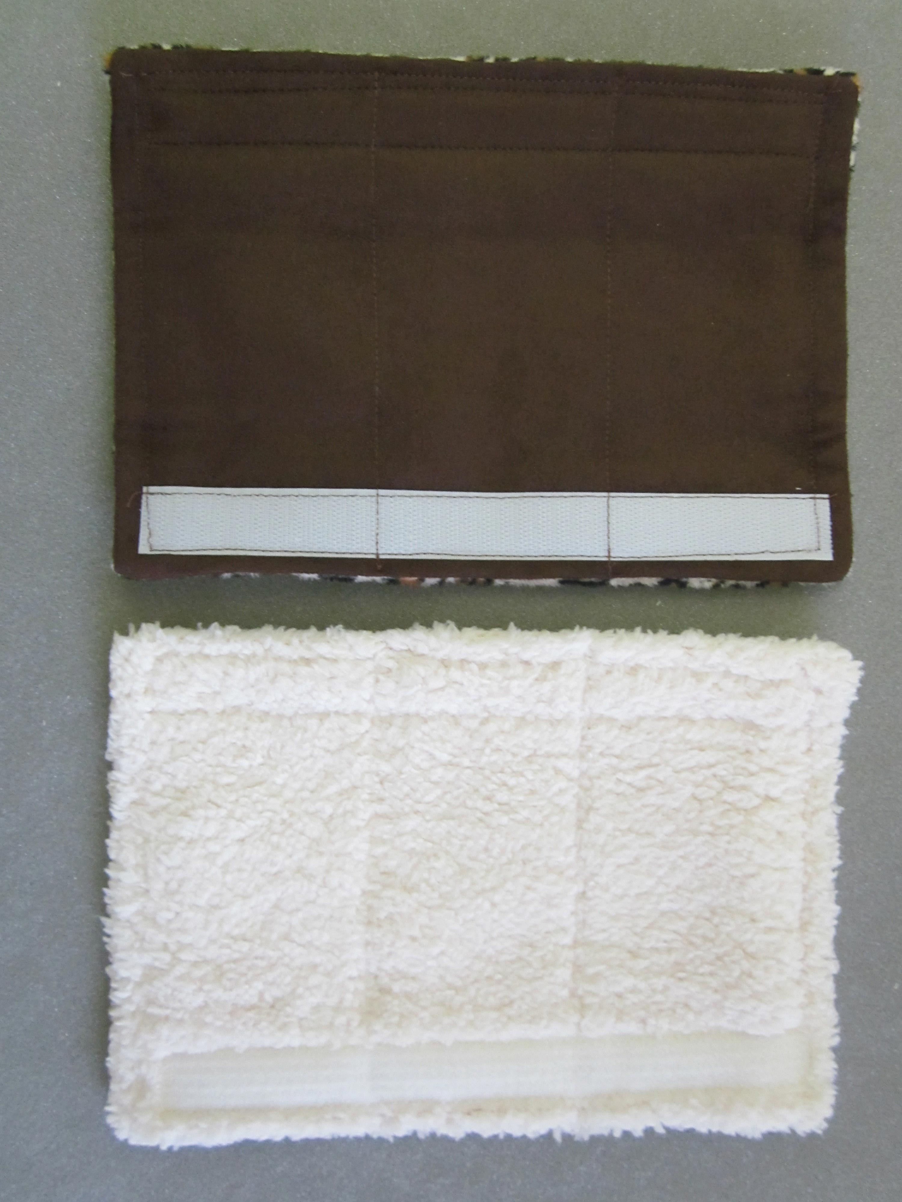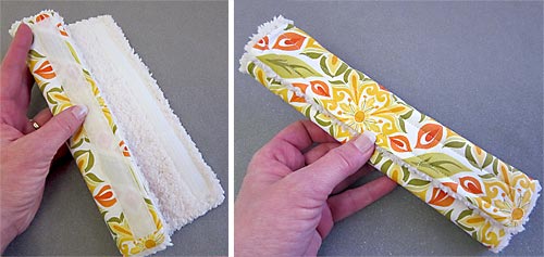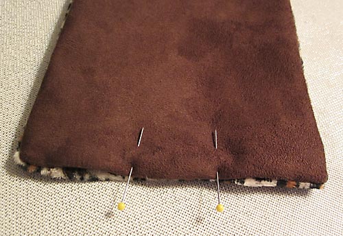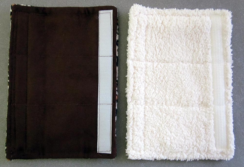 - Flip over the cover so the interior is now right side up. Place the opposite side of the Velcro® strip along the RIGHT side, lining up the outside edge of the strip with the topstitching seam. Pin the Velcro® in place or otherwise adhere.