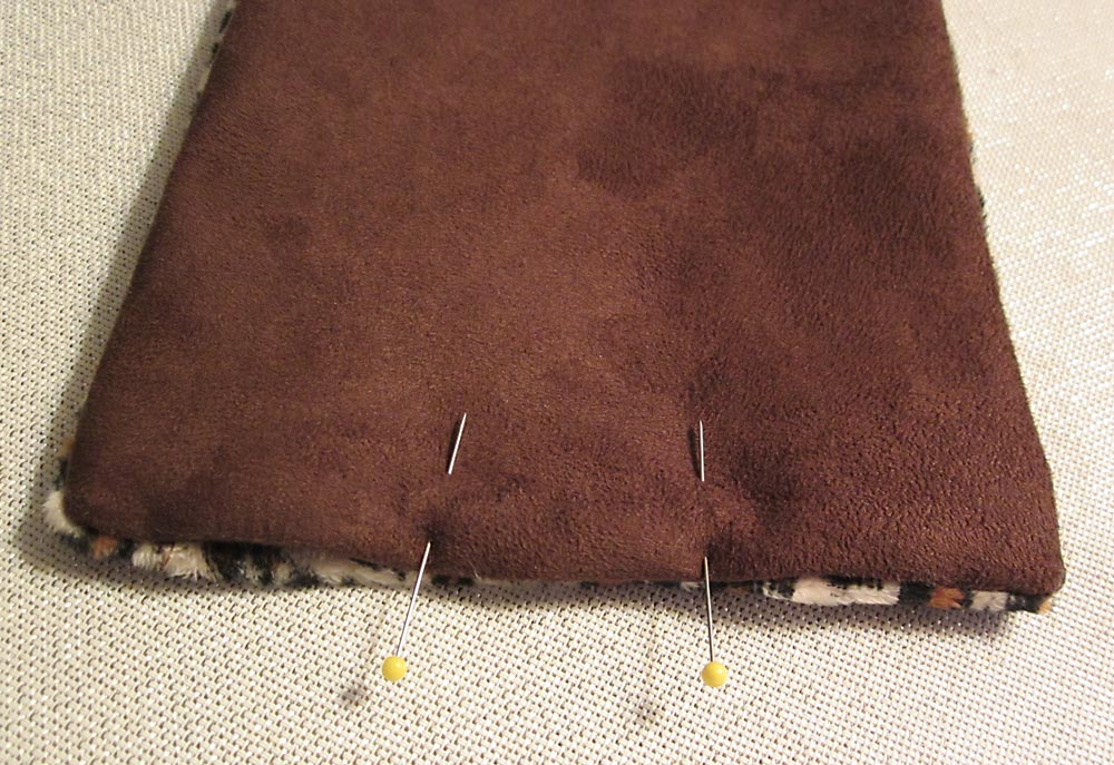 - Fold in the raw seam allowance along the open edge so it is flush with the sewn seam and pin closed. Press if need be, but remember that some polyester and napped fabrics, like fleece and faux suede should not be directly pressed. Iron from the other side or use a pressing cloth.