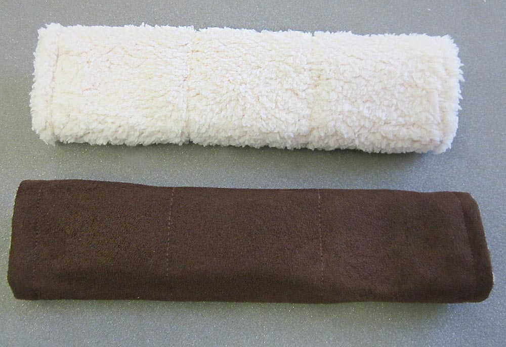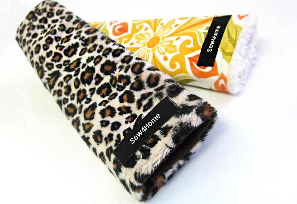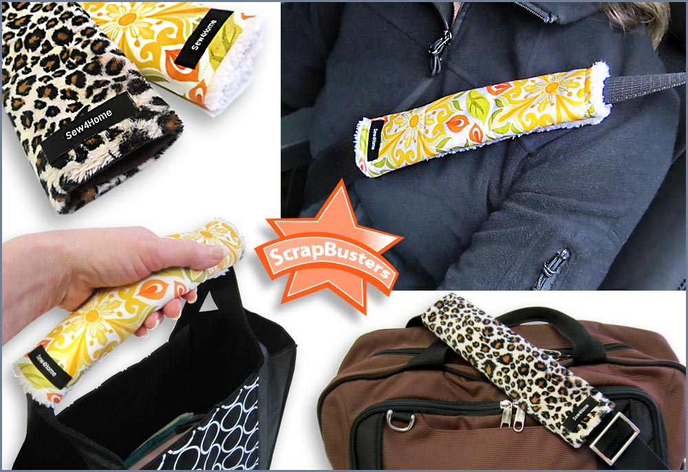 Buckle up! But do it with more comfort and style with a super cute seat belt cover. Another great ScrapBusters! project, this easy wraparound cover is not only perfect for seat belts, it’s also great for briefcase or suitcase straps. It even worked nicely to pad the handles of the recent heavy-duty Grocery Totes we made. Our design is reversible so you can make one side in cozy fleece for cold days and the other side in cool cotton for warm weather. Not only are seat belt covers an added comfort, they also help keep your shirt or jacket from becoming a wrinkly mess on long drives. These versatile straps would make a great gift for all the drivers your know –customize the fabric to match their moods.