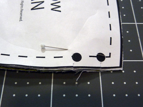 - Remember to mark the position for the adjusting tabs. We clipped into the seam allowance at the pattern dots for our marking points. You could also use pins or a marking pen.