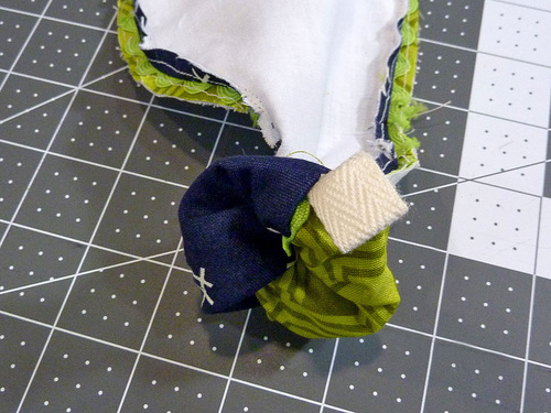 - Turn right side out. Gently push out the corners and smooth the curves, using your finger or a long tool with a blunt end, like a large knitting needle, chopstick or point turner. Press flat.