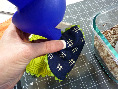 - Measure one cup of the finished filling, and carefully pour it into the opening of the eye pillow.