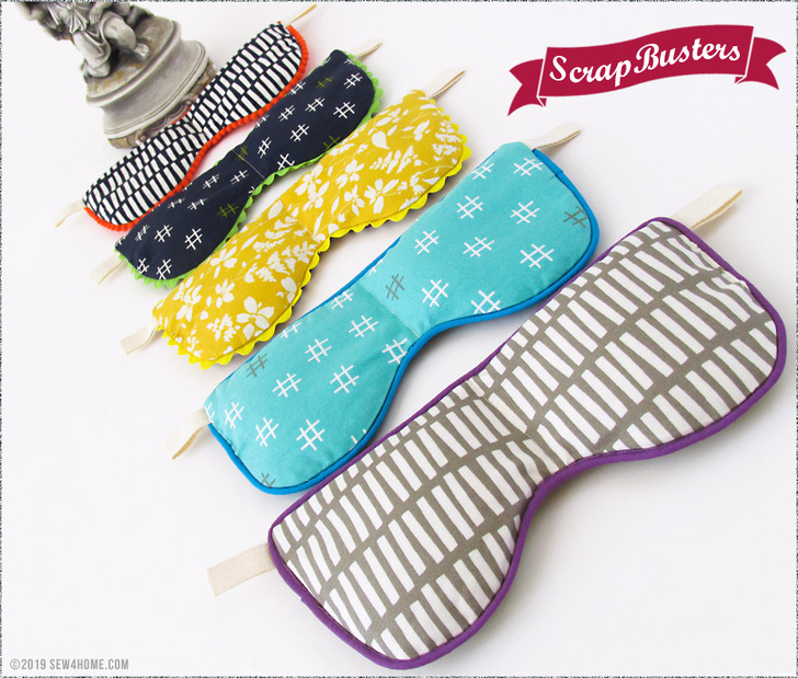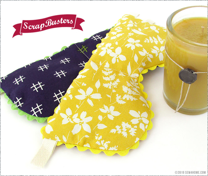 Here’s a fast and inexpensive way to create a wonderfully calming gift: your own soothing spa-style eye pillows. Each one uses just small amounts of pretty fabrics plus a bit of trim. We opted for fun, colorful combinations, pulling our quilting cotton prints from a Jolly Bar bundle from Fat Quarter Shop – a perfectly sized precut for this project at 5″ x 10″. You could certainly also go with luxury fabrics such as satin and silk. A lightly scented filling of rice and flax seeds gives them the perfect weight and aroma.