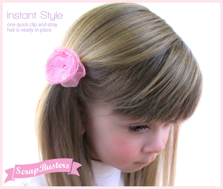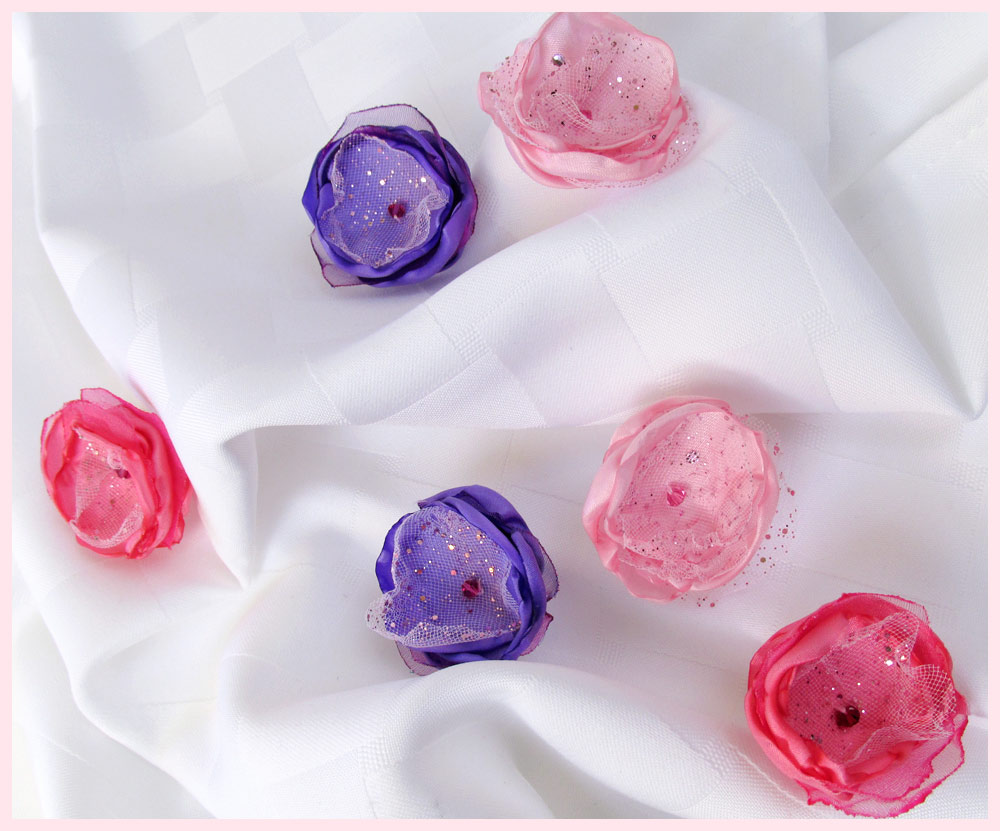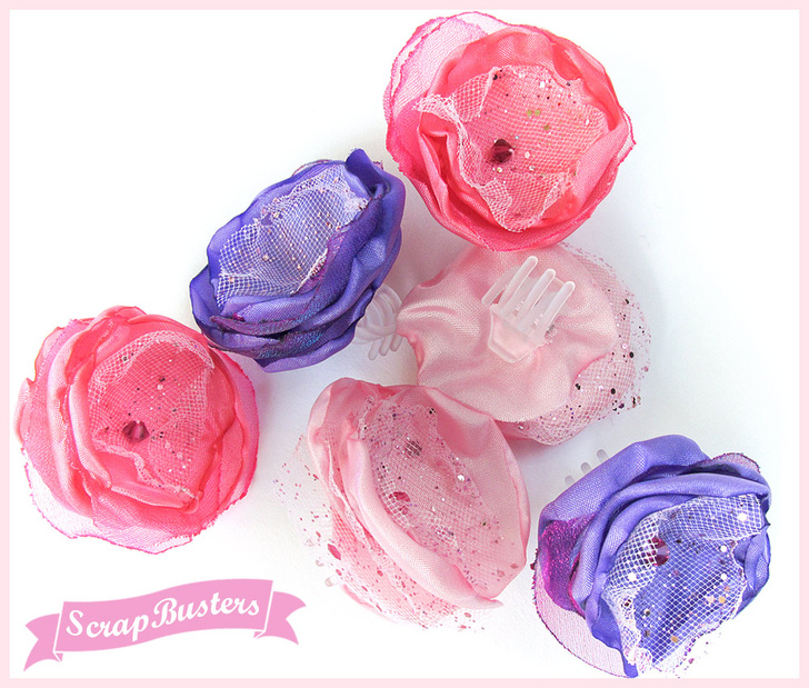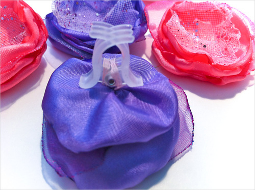 The finished flower is hand stitched to a tiny clip, which can then be attached to an elastic, a headband or just fastened right into a hairdo.