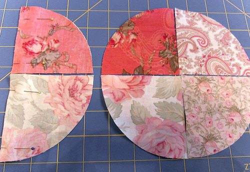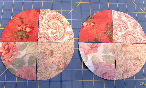 - Using the appropriately sized pattern piece, cut TWO wedges from EACH print for EACH cushion.