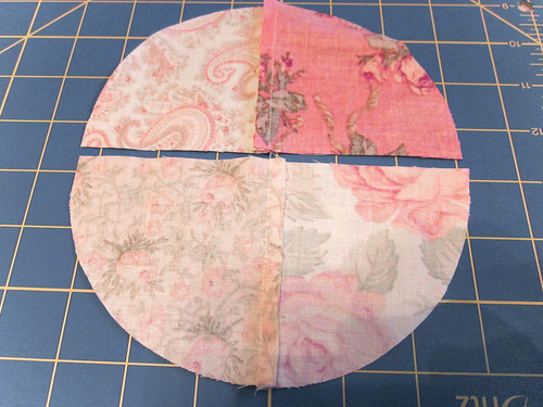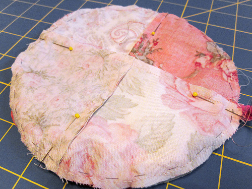 - Place the two circles right sides together, aligning all the seams. Pin in place.