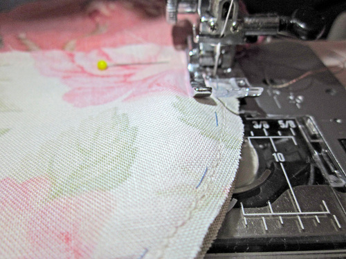 NOTE: We chose to hand baste because it was easier to control with such a small circumference, small seam allowance, and small trim. This is the first of two basting steps – hand basting.