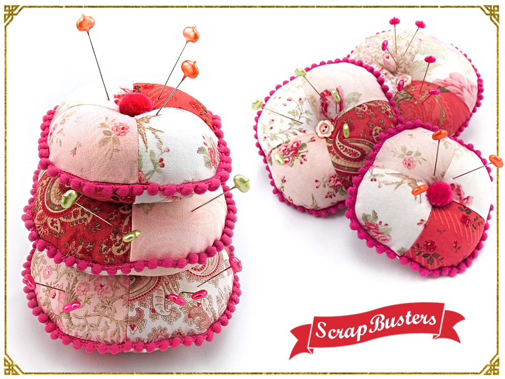 NOTE: Supplies listed are for all three pincushions.