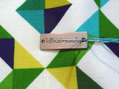 - Hand stitch the label in place with a double strand of the heavy floss.