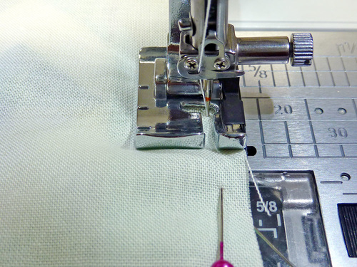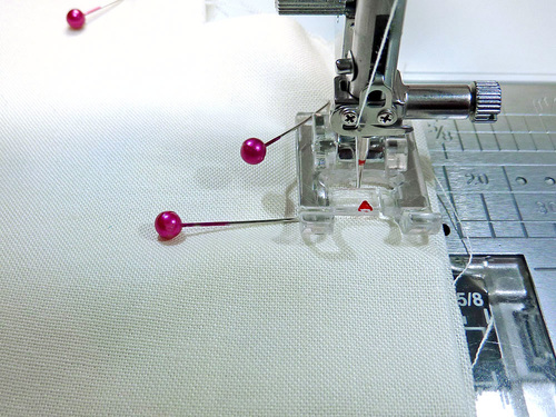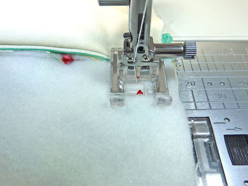 - Stitch across the top through all three layers, using a ¼” seam. We used our Janome Quarter Inch Seam foot; you could also use a Zipper foot.