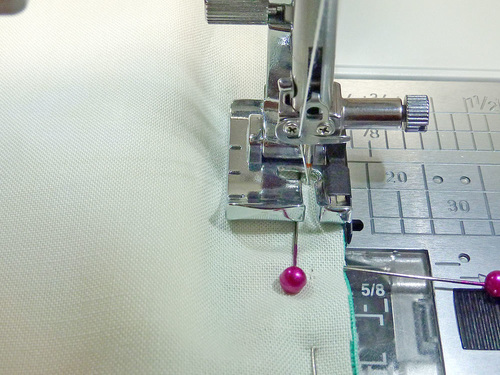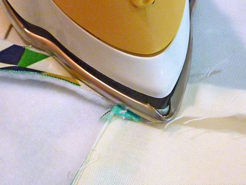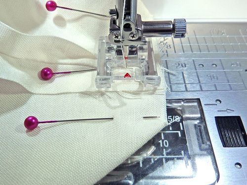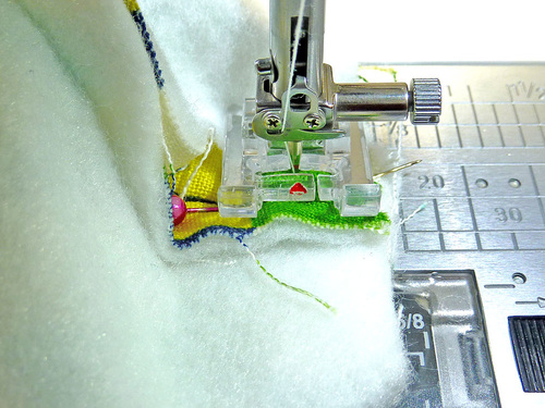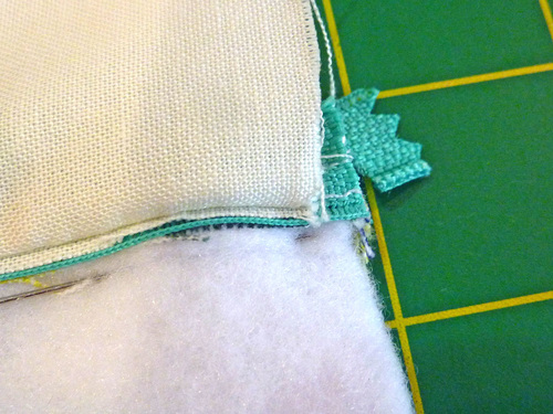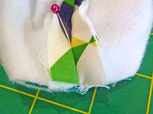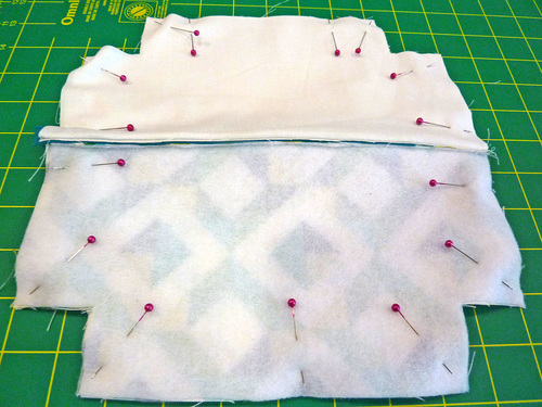 NOTE: Do not stitch around the cut out corners — you are just stitching the sides and the bottoms.