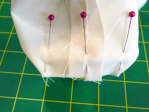 - Re-fold so the exterior pieces right sides together. Align the raw edges along both sides and across the bottom. Pin in place.