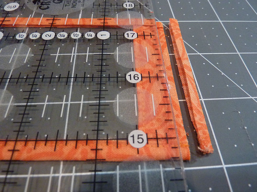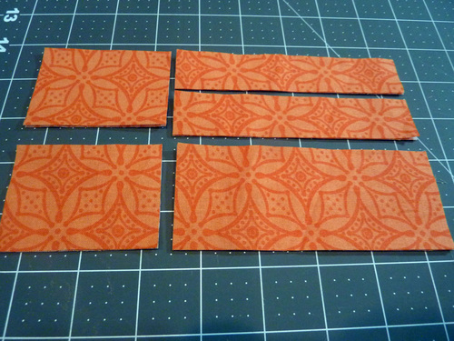 - Find two of the three narrow 5″ strips. One is for the top and the second is for the bottom.