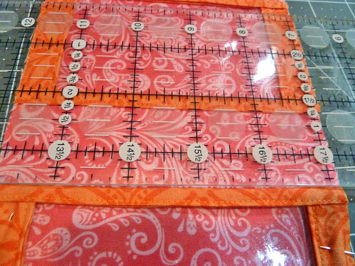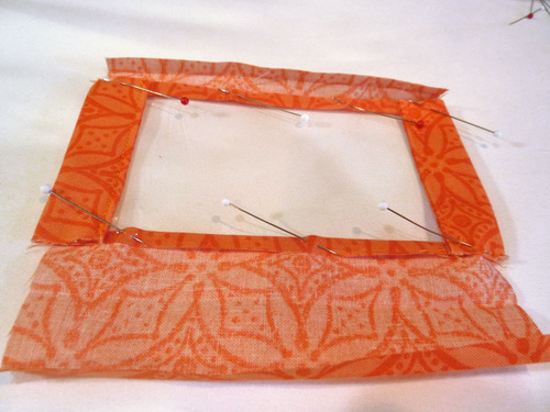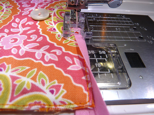 - Trim away any excess side binding fabric so the sides are flush with the top and bottom and pocket measures 5″ in width.