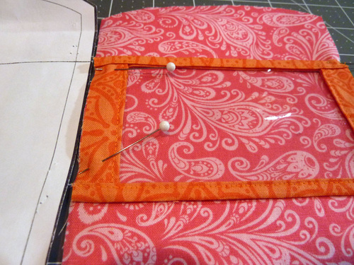 - Fold the top and bottom bindings over the vinyl and edgestitch in place, as above, stay very close to the folded edges of the fabric.