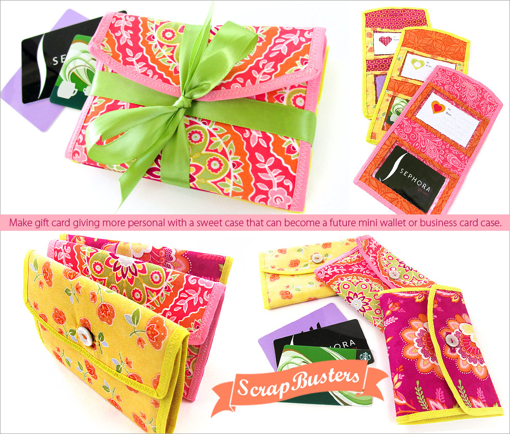 Each case finishes at approximately 5¼” wide x 9¾” high when open and 5¼” wide x 3¾” high when closed and secured with a cute button. When it’s done holding a gift card, the case would be perfect to use as a mini wallet or to hold business cards.