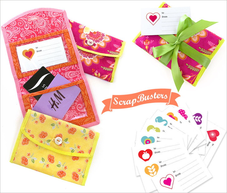 Gift cards are an excellent option when shopping time is tight or you’re struggling to figure out someone’s correct size, individual style or unique taste. That said, a gift card stuffed into an envelope can seem a little… well… impersonal. Our pretty fold-over gift card case adds the personal touch that says, “I may not know if you prefer bohemian or Burberry, but I know you’re special, and I’ve made this just for you.” There are two 4¾” pockets to hold gift cards, cash and/or a handwritten note. We’ve even designed two sheets of ten, all-occasion gift tags you can print and cut (that’s 20 total if you’re doing the math). They’re perfectly sized to fit in the inner pockets.