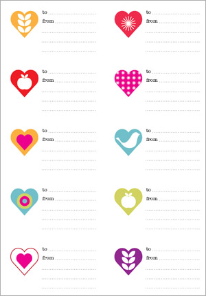 Don’t forget the two sheets of ten custom-sized gift tags you can use. Click on an image below to download the Heart Gift Tags and/or the Flowers Gift Tags PDF. If possible, print on a heavy-weight paper or, if your printer can’t handle different types of paper, print on standard printer paper, glue to a heavy backing, then trim to size.