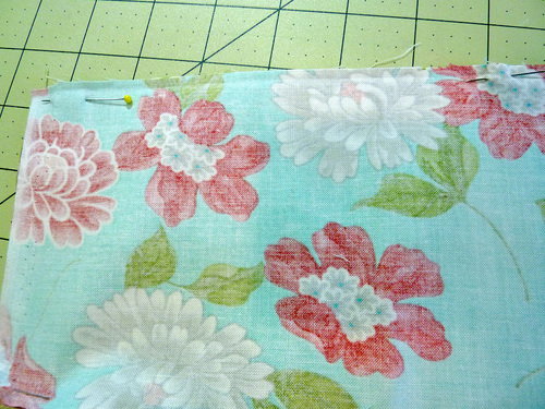 - Overlap the folded head of the bias tape with the tail a few inches. Trim away any excess length from the tail and add a few final pins to secure.