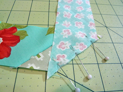 - Place the next strip in the sequence right sides together with the two-strip piece.