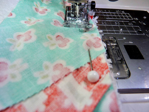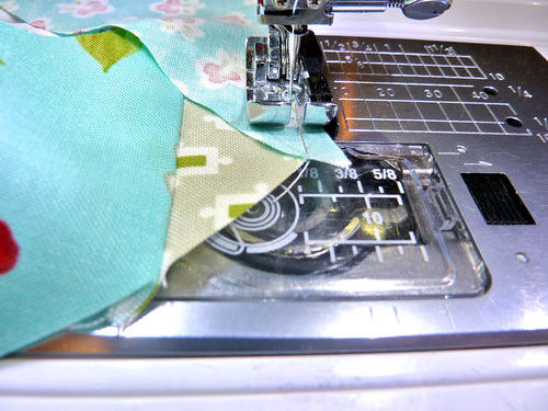 - Using a ¼” seam allowance, stitch these first two pieces together. We used our Janome Quarter Inch Seam foot for all the seams.