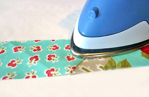 - Press the finished length of binding tape, pressing open all the tiny diagonal seams.