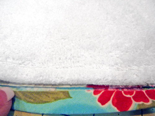 - Place the terry cloth right side up on your work surface. If cut from a towel, your terry in likely to be double-sided so it won’t really matter.