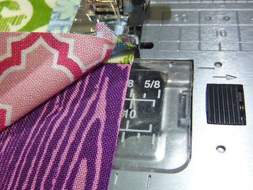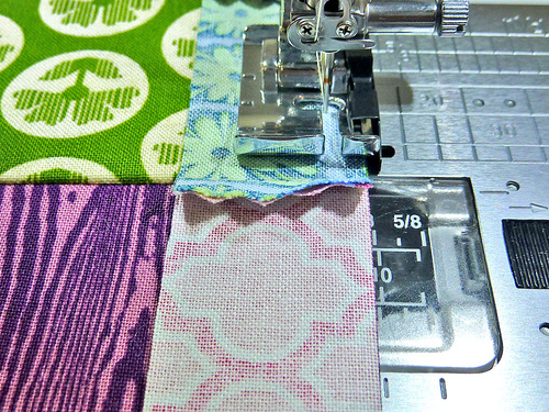 - Stitch together, using a ¼” seam allowance. Be especially careful to make sure the vertical seams line up.