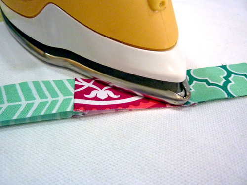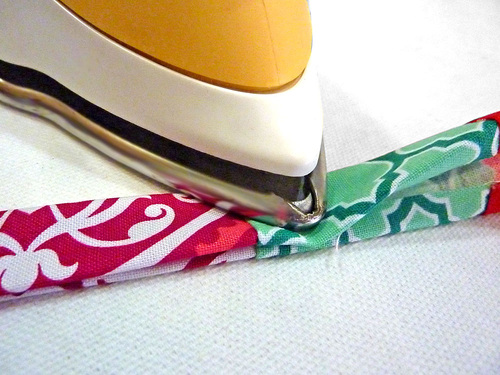 - Fold the strip in half, wrong sides together, press well to set a visible crease.