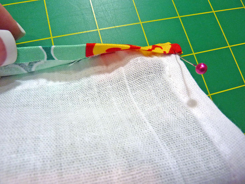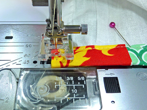 - Edgestitch the binding in place along the top. Go slowly to insure you are catching both the front and the back of the binding in this one seam.