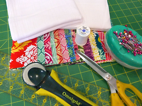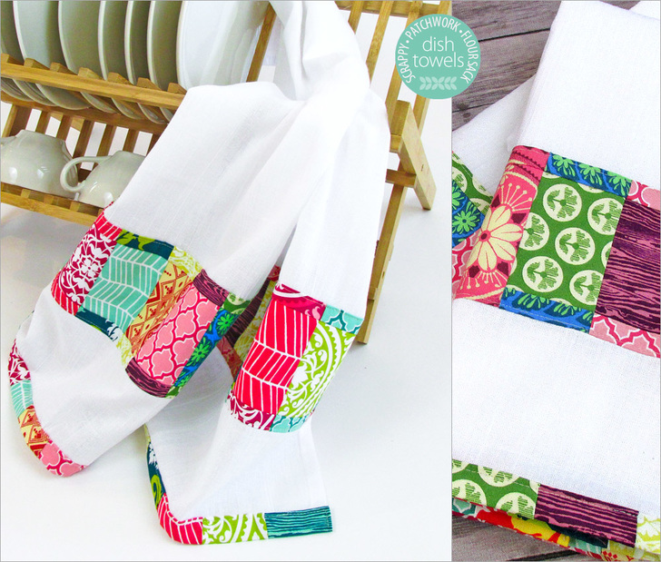 NOTE: You could also make your own towel from a super lightweight cotton or linen. Add a narrow hem all around to yield a finished size of approximately 30” x 32”. - All-purpose thread to best match the patchwork and the towel; we used white