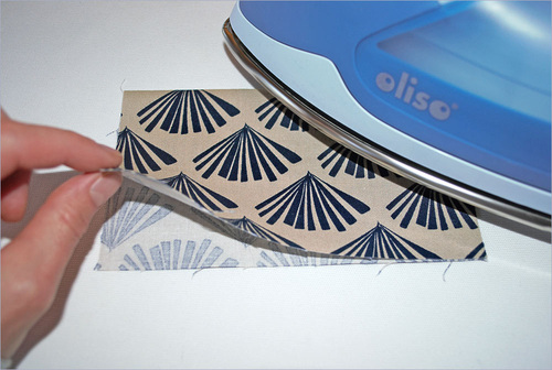 - Turn each tab right side out through the open end. Using a long, blunt tool, like a chopstick, knitting needle or point turner gently push out the corners so they are nice and sharp. Press flat.