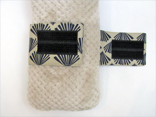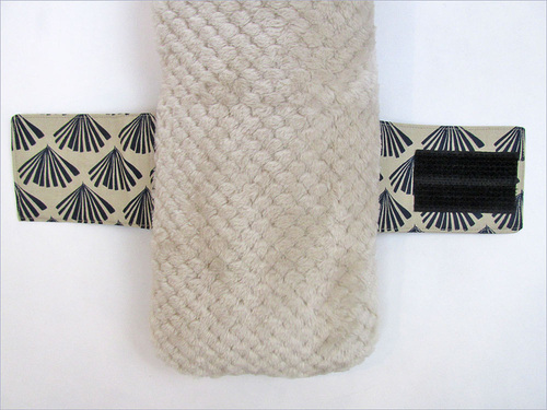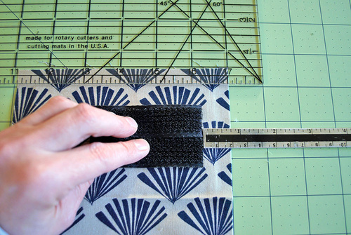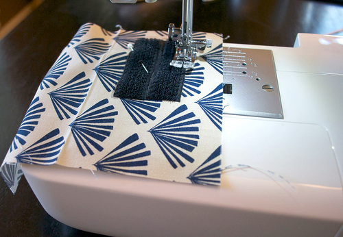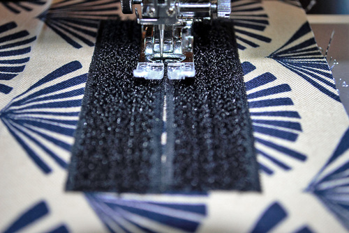 - With the tabs still a flat single layer, stitch the Velcro® in place around all four sides.