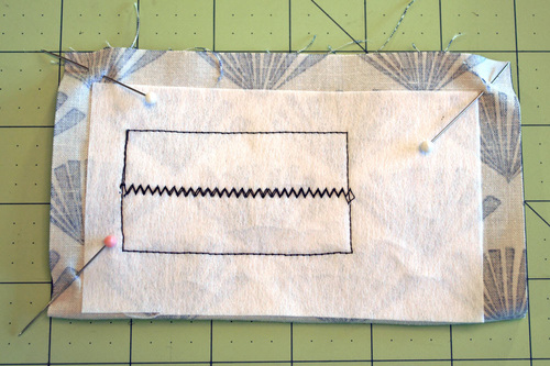 - If you are worried about the pocket shifting, you can also machine baste the long and short sides in place. Keep these basting seams within the ½” seam allowance; ¼” would be good.