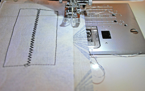 - Edgestitch the pocket in place across the bottom seamed edge only.
