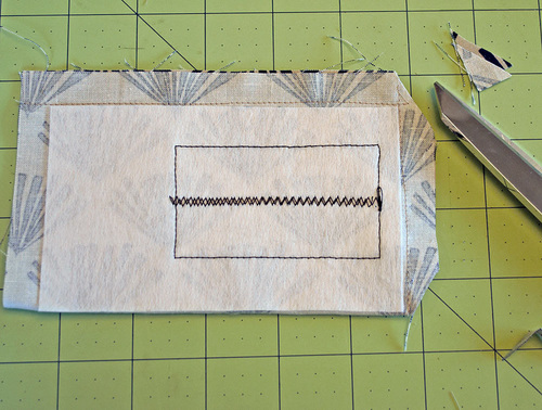 - Cut a matching diagonal on the pocket’s interfacing panel.