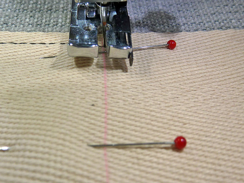 - Pivot so your foot is directly aligned with the previous stitching.