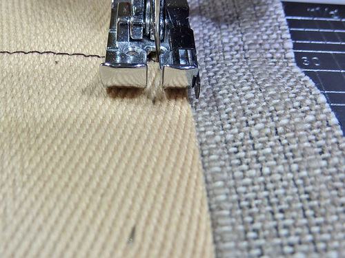 You can also choose how close to the edge of the strap, or other element, you want to run your stitching. From ⅛” – ¼” is standard. Much closer, and you risk the edge of strap pulling out from the stitching. Much farther away, and you’ll create a “lip” of fabric that can flip up or otherwise look bulky and unprofessional.