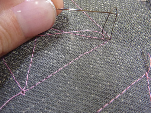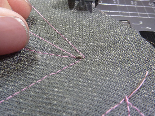 - We do not recommend using a traditional backstitch/back tack to secure your stitching; it will look too messy. But, if your machine has a lock stitch function, this is another option. All the steps are the same as above, simply adding a lock stitch at the very beginning, and ending with a lock stitch at the completion of the first diagonal line.