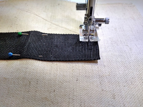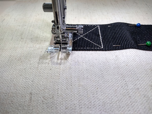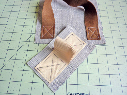 - Following your project’s instructions, place your strap into position as directed, such as centered over a seam or parallel with a pocket.