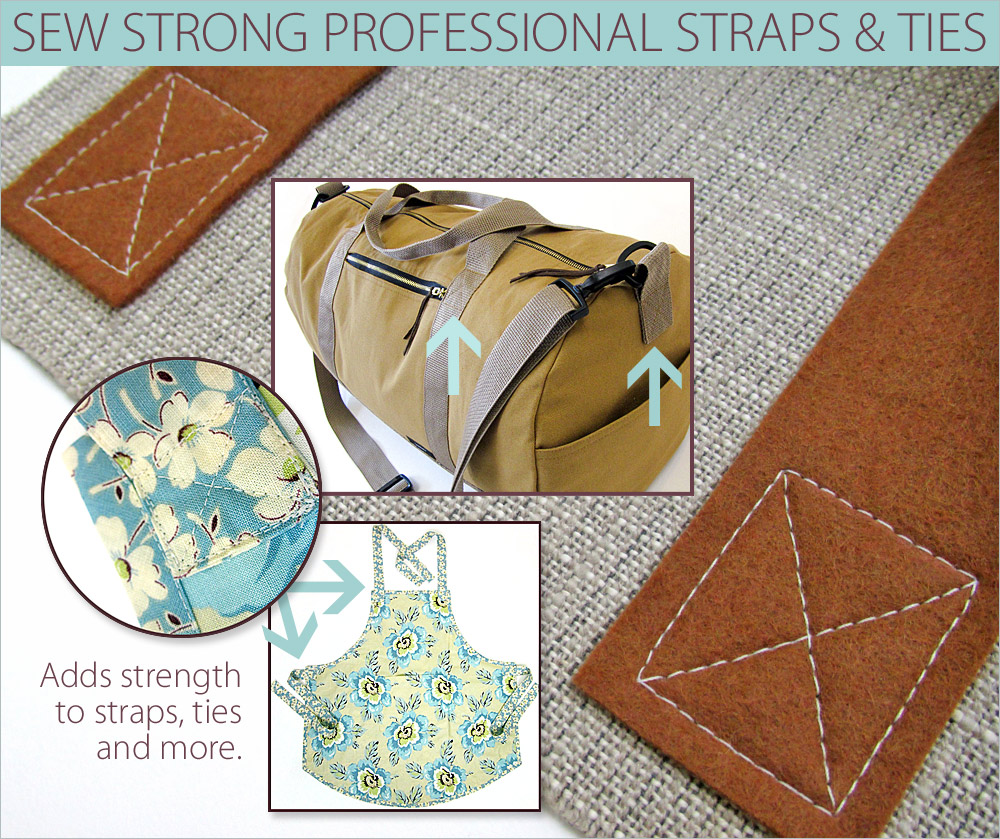 Here at Sew4Home, we use the stitch often to hold an apron strap in place or to secure a handle to a bag. The function of an X Box in home sewing projects is to both achieve a tight bond and to look smooth and even. We show options for a classic single stitch box as well as the commercial-style double stitch box.